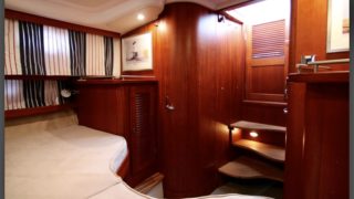 Utrustad med: mörkblåa skrovsidor, bottenmålning, fullteak, bogpropeller, ankarspel i aktern, soffor och bord akterdäck, pentry med gasolspis, kylskåp, Nimbus bestick och glas, varmvattensberedare, trimplan, dieselvärmare, stereo, eltaklucka, 2 x vindrutetorkare med spolning, Raymarine 12 tums plotter, ekolod, dusch både inne och ute, Nimbus bäddmadrasser, kuddar, dynor, gardiner. Båten levereras vårrustad med tampar och fendrar.
