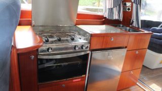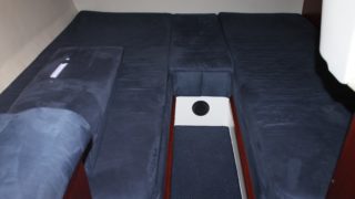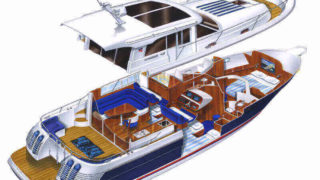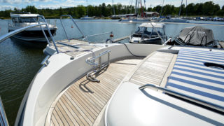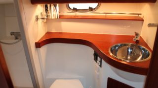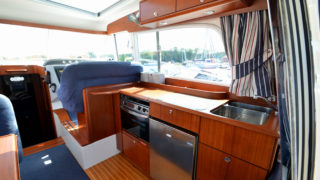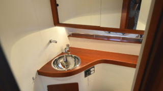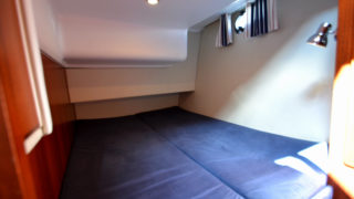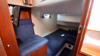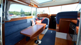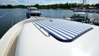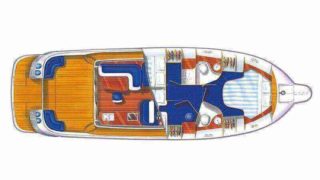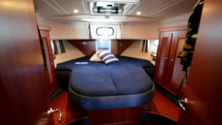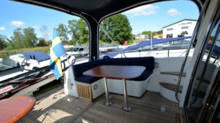Tre separata kabiner varav den främre ägarkabinen med dubbelsäng. Rymliga garderober och två toaletter varav en med dusch. Stort akterdäck med gott om sittplatser och specialtillverkat stort bord. Gott om stuvutrymmen och stor badbrygga med Hurley jollelyft.