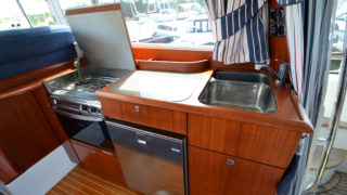 Ett kraftigt V-skrov och vikten borgar för bra sjöegenskaper även i grov sjö. Båten är tillverkad av Storebrovarvet i allra vackraste Pelle Pettersson-design. Som 2009 års modell har båten de senare uppgraderingarna såsom nya instrumentpanelen, stuvutrymmen i sofforna bak mm.