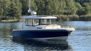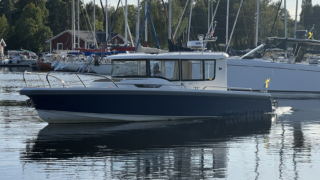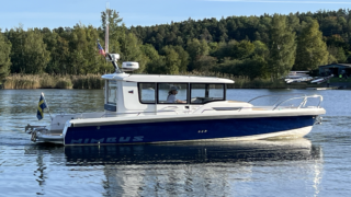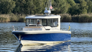 Välutrustad med: 2 x Simrad GPS/ Plotter GO 12, Simrad Radar 4G, Simrad ekolod (Sonic SS60), Simrad autopilot, VHF Simrad RS40-B med AIS (sändare / mottagare), Sjökort, Bogpropeller, Elektroniskt motorreglage, Zipwake trimsystem, Batteriladdare 25 Ah med övervakning, 4 st batterier, Landströmssystem, Sittbrunnsbelysning, Stereo från Fusion med 2st högtalare, Kapell för vindrutor, Gångvärme med defroster, LED-belysning i hela båten, Bäddmadrass, Mattor i kabinen, Corian bänkskiva i pentryt, Isolerat skrovsidor, Mörkläggningsgardiner, Mercury Upgrade Package inkl. Vessel/View Mobile, Ankarspel i aktern (Engbo), Ankarspel i fören (Lewmar), Badstege, Kompositdurk i hela båten(Flexiteak), Dynsats till för och akterdäck, Öppningsbar taklucka, 2 x vindrutetorkare, Hydraulstyrning, Roderindikator, 2 x brandsläckare, Automatiska länspumpar, Stöldskyddsmärkning, Startspärr, Gasolvarnare , Sökarljus, Dusch på badbryggan (varmt/ kall vatten), Gasolspis, Toalett, Tryckvattensystem, Värmare (Webasto AT4000) med fjärrstyrning, Varmvattenberedare (Isoterm 15L), kylskåp, Sjövattenpump i pentry, Septiktank med däckstömning, Mercury Active Trim, Undervattensbelysning, Signalhorn. Bottenmålning inkl. epoxigrund. Skrovfärg: blå (Folierat)