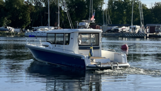Bestyckad med Inombordare (diesel) från Mercury på 270hk, maxfart ca: 35 knop och fin marschfart på cirka 30 knop. (Nypris på motsvarande båt nu: 2 920 000kr)