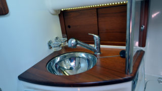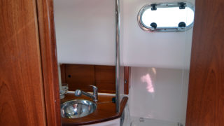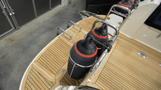 Vita skrovsidor, bottenmålning, värmare, bogpropeller, helkapell, kylskåp, diskho, varmvattensberedare, fullteak, cd-stereo, ankarspel i aktern, raymarine 12 tums plotter med sjökort, radar, sökarljus, vattentoalett med septiktank, Nimbus originalporslin, gasolhäll med två lågor, bord, Nimbus teakstol, tampar, fendrar