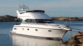297 h, utrustad med bl.a: fullteak, bottenmålad, skinninredning, landström med batteriladdare, , Nord West porslin/glas, bogpropeller, tvättmaskin, omfattande marinelektronik i styrhytt samt flybrigde från Raymarine inkluderar Gps plotter, radar, vhf m.m.