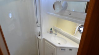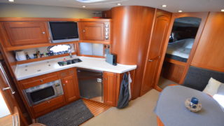 Båten är en två kabiners version och har all tänkbar utrustning.