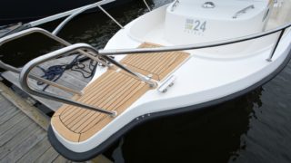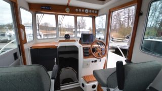 Utrustad med: Gråa skrovsidor, bottenmålning, Garmin plotter, radar, bogpropeller, gångvärme med defroster, dieselvärmare, trimplan, sökarljus, ljusramp, 3 vindrutetorkare, toalett, stereo med 4 högtalare, teak på peke och badbrygga, langetterade mattor, landström med laddare.
