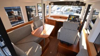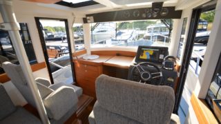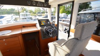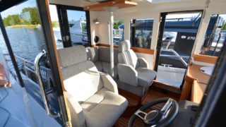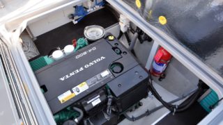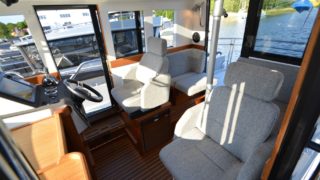 Utrustad med: Grå gelcoat, Simrad plotter, radar, Fusion stereo, bogpropeller, ankarspel i aktern, rejäla grindar och pulpit runt hela båten, dieselvärmare, gångvärme med defroster, sötvattensystem, toalett med septiktank, trimplan, 3 x vindrutetorkare med spolning, 3 x strålkastare på taket, sökljus, durk och takbelysning i hytten, kylskåp, teakdurkar, läslampor, landström med laddare, bord, kompass, elektroniskt reglage, automatiskt brandsläckningssystem.