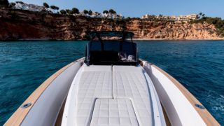 Utrustning inkluderar: Huvudhytt med dusch, eltoalett, vattensystem, T-top i kolsvart, teakträdurk, förlängd badplattform, bekväm badstege med handtag, sittbord i sittbrunnen med elektrisk höjdjustering och dynor på toppen, 2 extra kylskåp i akterdäcket, elektrisk BBQ (220v) istället för standardkök, utdragbart elektriskt biminitak på T-top, omvandlingsbart solbäddsalternativ, andra kylskåp i köket till höger, akterhytt, bogpropeller, batterisatskapacitetsuppgradering, 2500 W omvandlare, 5 kW generator, extra USB-uttag, T-top LED-belysning, LED-belysning för gästfrihet, undervattensbelysning, luftkonditionering (varm/kall), Volvo (Garmin) 16-tums skärm, radar, Volvo trip computer, 24” LED-platt-TV med antenn, underhållningspaket med hög prestanda, triangelankare med elektriskt system och kamera på plottern, anpassade fendrar och täckpaket, rostfri akterdörr, kedjeställning, sittbordskapell, kapell för aktersäte + styrpulpet + aktersolsäng och konsolsäten, konsollkapell, täckskydd för transport.