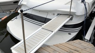 Utrustad med: ankarspel fram, bogpropeller, elverk (endast 38h) AC med både värme o kyla, elektrisk toalett med septiktank, 2 x kylskåp, keramisk spishäll (går på 220v) varmvatten, helkapell, stereo, Garmin 721, vhf, ekolod, trimplan, elektrisk landgång i aktern, trimplan, dusch både ute och inne, tampar, fendrar.