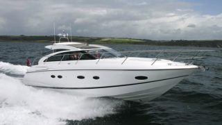 Utöver den omfattande standardutrustningen är denna modell även extrautrustad med vitt skrov, Serotina körsbärsinredning, Midnight Sky bänkskiva i pentry, joystick kontroll till dreven, bogpropeller, dubbelbäddsmöjlighet i akterkabin med glidskenor, teak bord i cockpit, hardtop med elektrisk öppning, teak i cockpit, teak på sidodäck, rostfritt ankare, grill i cockpit, TV med DVD och antenn, elverk (Onan 4,0 Kw), Furuno 3D-DRS4D radar/ plotter (12″display), värmare (Ebersprächer D5L), värmeutblås på toaletterna, defroster via värmeväxlare, värmeutblås i cockpit, blå belysning under badbrygga, septiktank med elektrisk och manuell tömning, reflexskydd monterat under vindruta i mörkblått, extra akterkapell som går rakt ner från hardtop med rutor, dynor i cockpit klädda i Nitoxx, specialtyger i båten från Milan Collection.Medföljer även porslin från Princess i sex delar med glas, tallrikar och bestick.