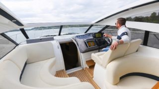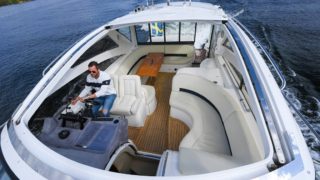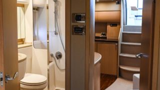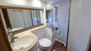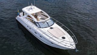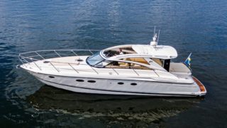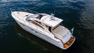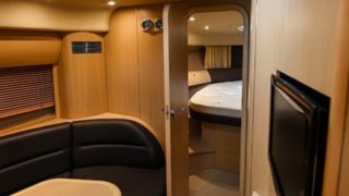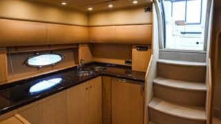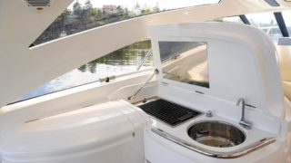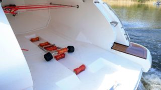 Utrustad med: bottenmålning, trimplan, ankarspel i fören med sjövattenspolning, 2 x eltoaletter med septiktank, 2 x AC, sökarljus, 2 x kylskåp med frysfack, varmvattenberedare, dusch ute och inne, induktionshäll och micro/ugn i pentry samt grill i wetbar, granitskivor i pentry, teak i sittbrunn och badbrygga, VHF, autopilot, ekolod, stereo (samt en separat i owners cabin), hydrauliskt infällbar landgång med ledstång, soldynor för och akterdäck, i läggdynor i salongen för övernattning, myggfönster i samtliga kabiner, tv med antenn, durkbelysning, Onan 7kw elverk, landström med laddare, elektriskt öppningsbart tak, elektriskt öppningsbart garage i aktern för ca 2,7m stor ribbåt. (båt ingår ej)