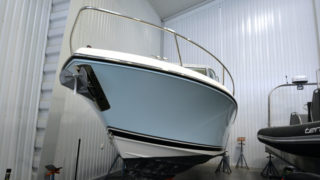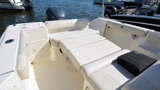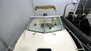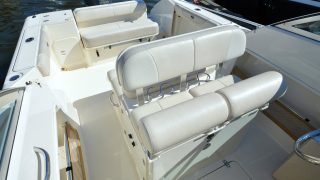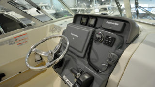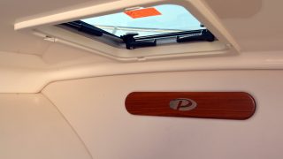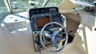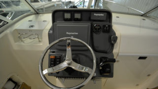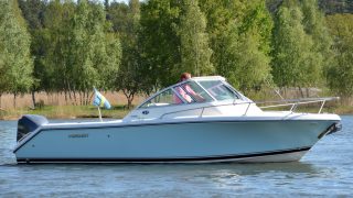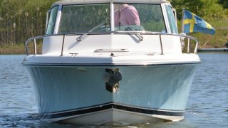 Utrustad med: Ljusblåa skrovsidor, bottenmålning, ankarspel i fören, kapell, ställbar rostfri ratt, trimplan, spöhållare, fisksump, dusch på akterdäck, 12 tums plotter från Raymarine, Vhf, stereo med 4 högtalare, lanternor, hydraulstyrning, toalett med septiktank, brandsläckare, 2 x vindrutetorkare.