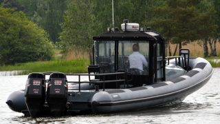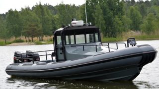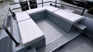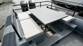 Cabinmodellen med 4 ståstolar, övernattningsbar ruff, stort akterdäck med u-soffa och hydrauliskt uppfällbart bord.