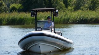 Nu får vi in denna trevliga RIB från Svenska Rupert i den snygga kulören vit med T-top!