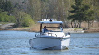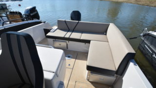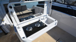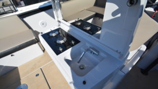 Eltoalett med septiktank, pentry i sittbrunnen med gasolspis (2 lågigt) diskho, varmvattensberedare, T-top med belysning, Black line svarta räcken, uppgraderade sittdynonr, två kylskåp, Flexiteek, dieselvärmare, bogpropeller, landström med laddare, dusch på badbryggan, peke i fören med ankarspel, bord i sittbrunnen som kan omvandlas till solbädd, soldynor på fördäck, Simrad 12tums plotter, Fusionstereo med högtalare, sökarljus på taket.