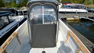 Utrustad med: kabin med stoppade dynor, trimplan, vindrutetorkare, brandsläckare, länspump, förtöjningsutrustning, plotter/GPS, ekolod. 12v uttag.