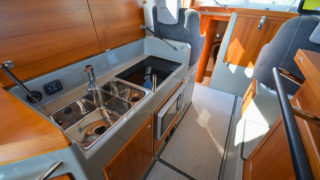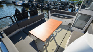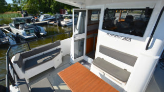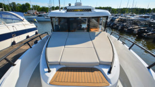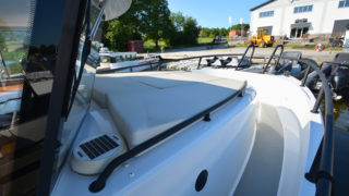 Bottenfärg + primer (svart), Grått skrov, Grå däcksytor, LED strålkastarramp på taket, Elektriskt ankarspel i aktern med fjärrkontroll, Ankarspel i fören med fjärrkontroll, Joystick kontroll till motorerna, Bord till akterdäck, Soldynor till kabintaket med skyddskapell, Port i skrovsidan vid förarplats, Kylbox i utrymme på akterdäck, Dynor till akterdäck, Svarta räcken, Dusch till akterdäck, Läderklädda räcken inne i båten, Toalettutrymme i akterkabin, Överkast och bäddmadrasser, Däcks, golv och gardinskyddsbelysning, Flexiteek på bänk i fören, Garmin VHF 315i, Uppgradering till 2 x Garmin 7416 plottrar, Garmin ekolod, Garmin radar Fantom 24”, Autopilot Garmin reactor för elstyrning (joystick)
