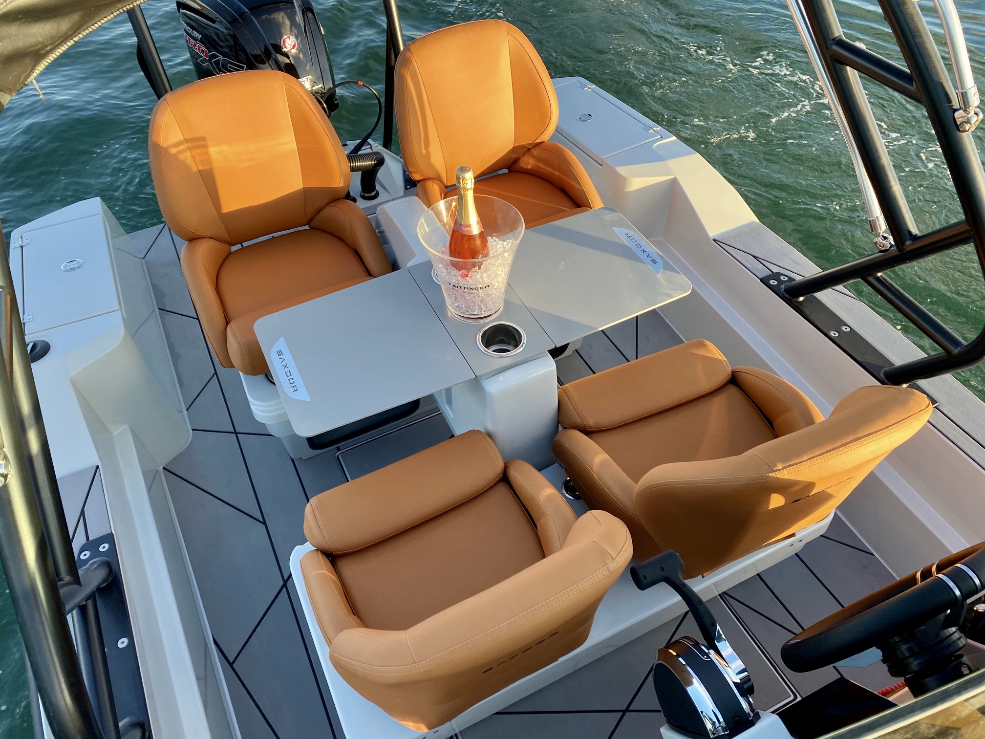 Båten är enkel och trygg att köra och har ett tresitsigt jockeysäte som standard men kan även fås med fyra stycken stolar sida vid sida eller som en 6-sits modell med bord.