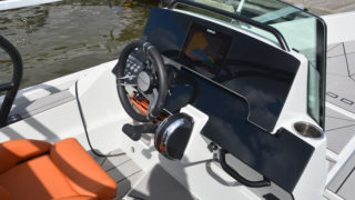 Hydraulstyrning, lanternor, dubbla länspumpar, fast bränsletank (110L) med nivågivare, hållare för brandsläckare, dubbla mugghållare på styrkonsoll, 12v uttag, förvaringsväska under ratt på konsoll, signalhorn, justerbar vindruta.