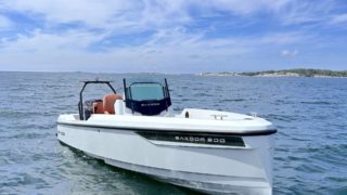 Fint exemplar av denna sportiga "minsting" från Saxdor Yachts, garantier finns på båt och motor, kontakta oss för mer information. Obs. Bilderna är tagna på systerbåt med samma färgkombination.