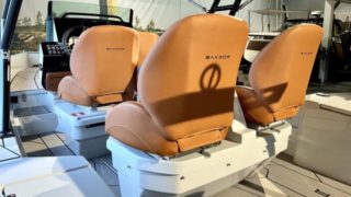Jockeysäte för tre personer ink ryggstöd, hydraulstyrning, lanternor, dubbla länspumpar, fast bränsletank (110L) med nivågivare, hållare för brandsläckare, soft däck i sittbrunnen och på sidosteg (ej fördäckslucka), dubbla mugghållare på styrkonsoll, 12v uttag, förvaringsväska under ratt på konsoll, Mercury Vessel view mobile, larm för låg batterispänning, signalhorn, justerbar vindruta.