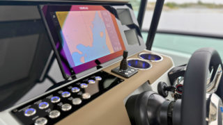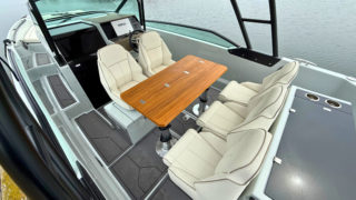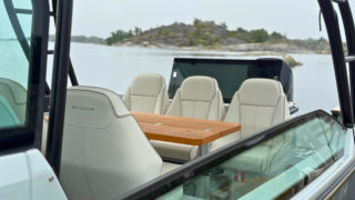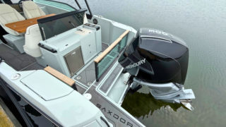 Båten är bestyckad med en Mercury V8-300 som ger båten en toppfart på över 45 knop och god marschfart kring 35.