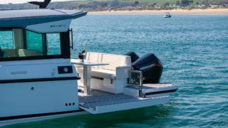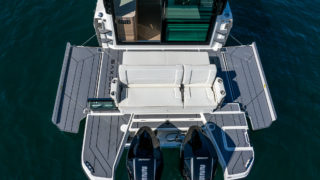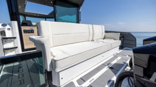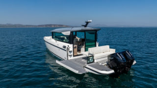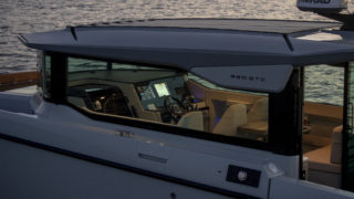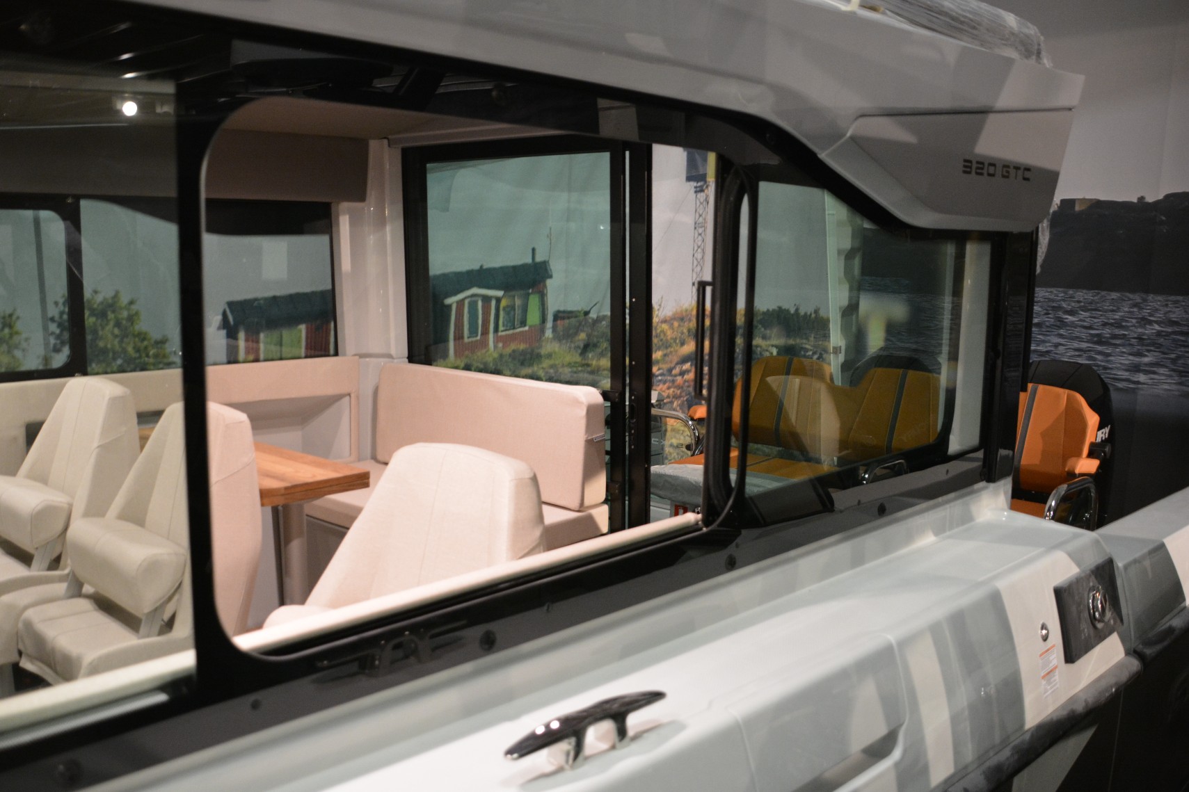 Saxdor 320 GTC har samma skrov och moderna lösningar som sin syster 320 GTO. 320 GTC är en hyttbåt med stora glasytor som ger en otrolig överblick över omgivningen. Hytten täcker hela bredden av skrovet vilket ger stora invändiga utrymmen. Passage från fördäck till akterdäck sker genom hytten med de stora och smidiga dörrarna. Utöver den fasta dubbelsängen i fören finns möjlighet till övernattning för ytterligare 2 personer uppe i hytten.