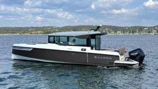 Bestyckad med 2 x Mercury AMS 300 V8, 50+ knop, fin marschfart mellan 35-40 knop. 80 gångtimmar.