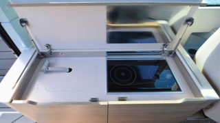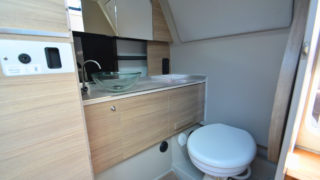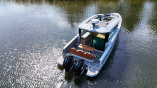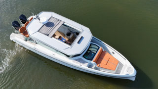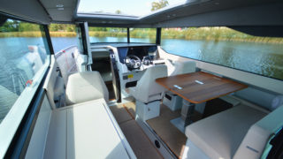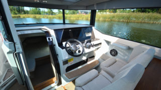 Båten har samma skrov och moderna lösningar som sin syster 320 GTO.