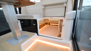 Vita motorer, Bogpropeller, Simrad NSSS Evo3S 12″ plotter, Simrad ekolod, Softdeck durk, Elektriskt glastak, Akterkabin, Färskvatten och elektrisk toalett, Dusch på akterdäck, Däcksbelysning, Landström med laddare, Dieselvärmare för kabinerna, Zipwake trimplan, Dynor och elektriskt bord på fördäck, Solbädd akterdäck, Elektrisk ruta i aktern, Kylskåp i kabin, Elektrisk soffa i kabinen, Rostfri grind på akterdäck.