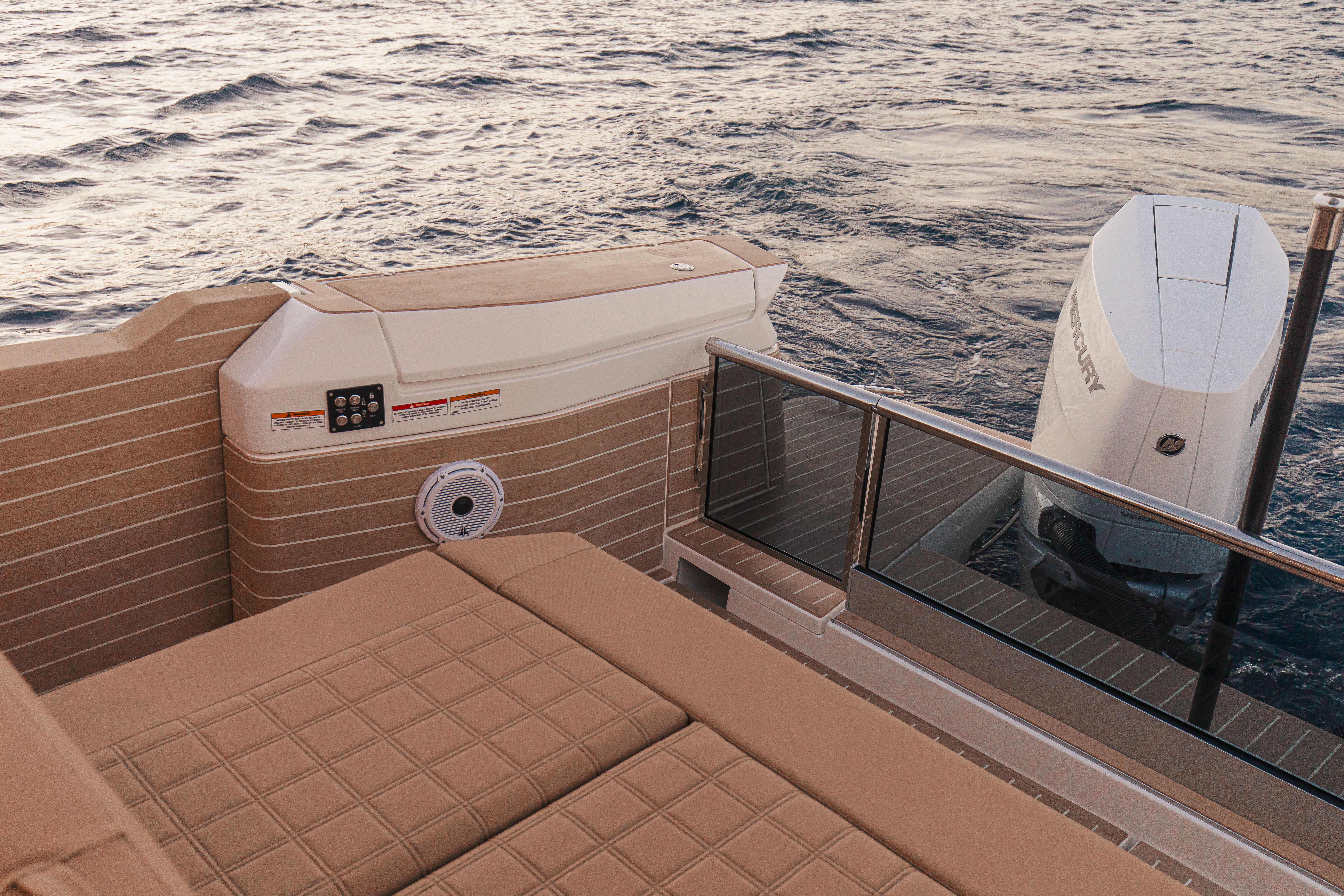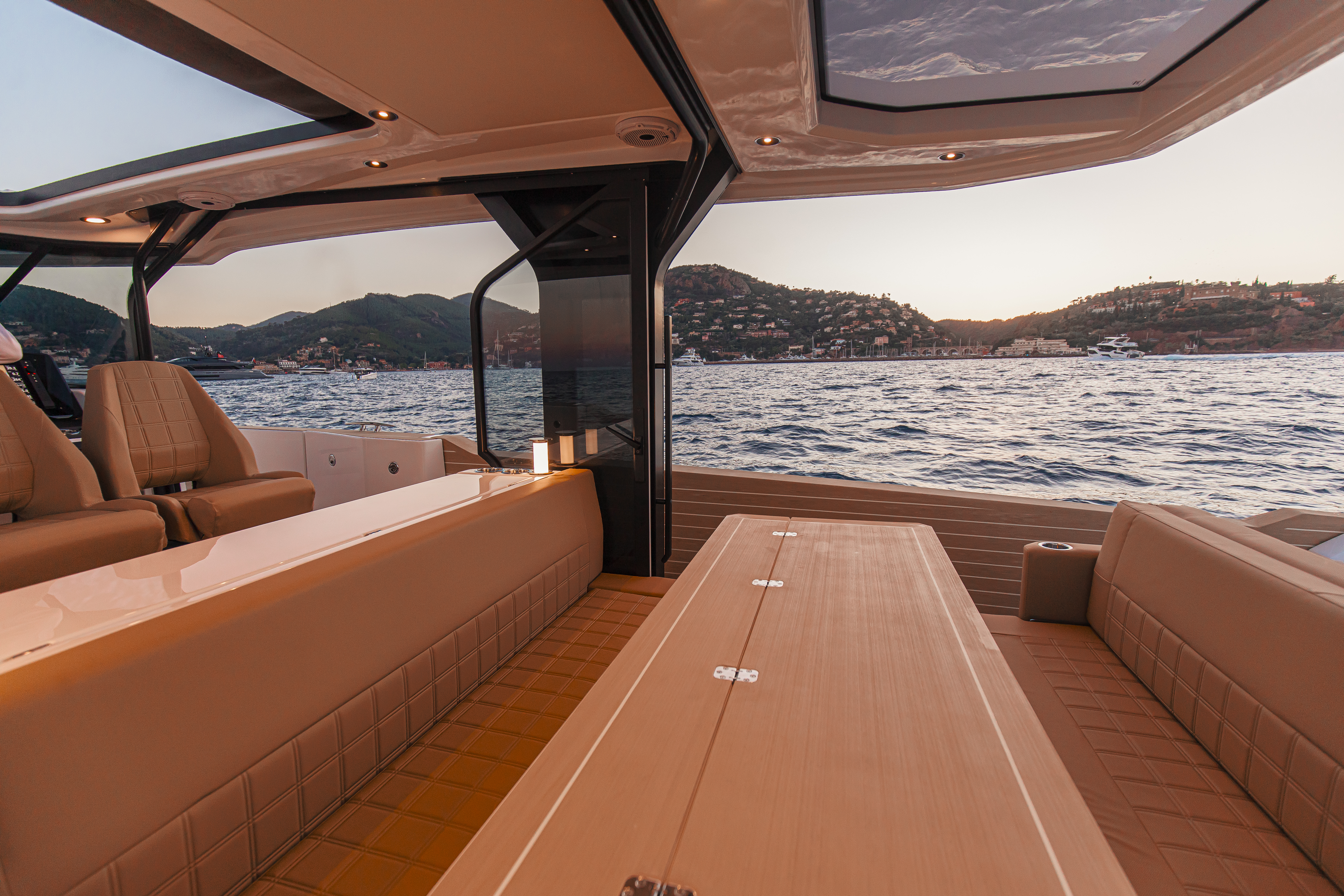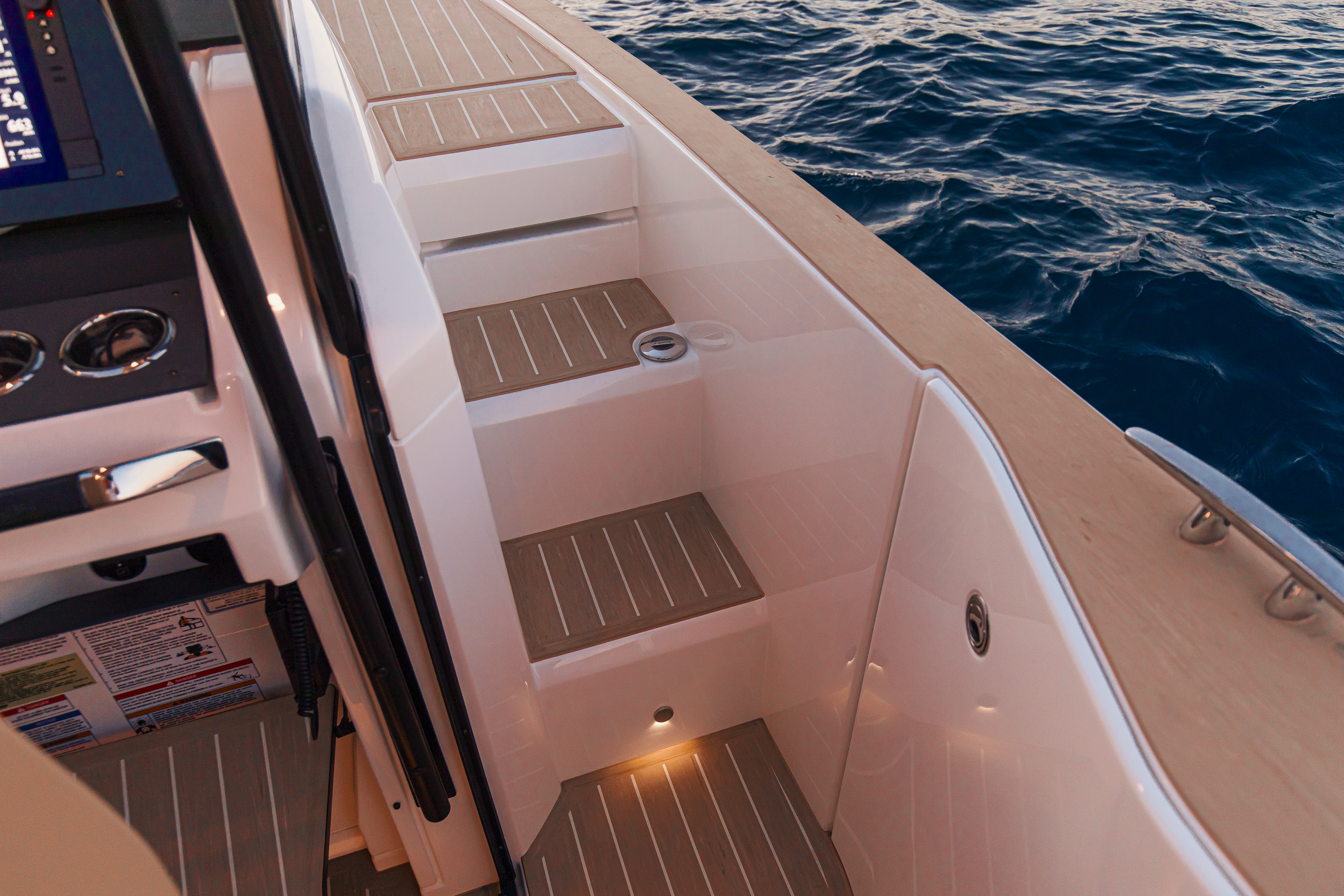 - 12 volt USB-C outlets (on the console and in the bow cabin) and inductive charger at the helm area