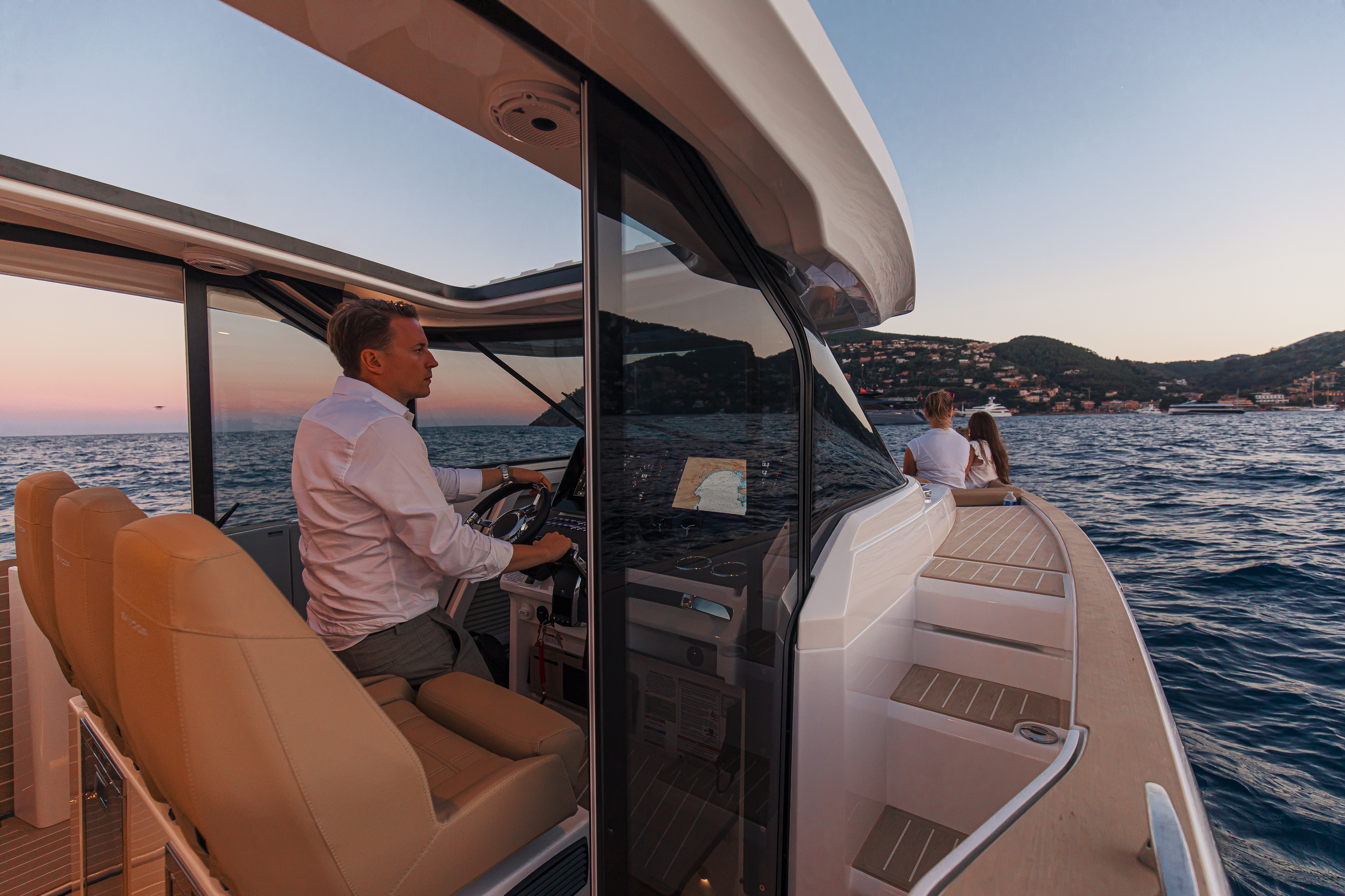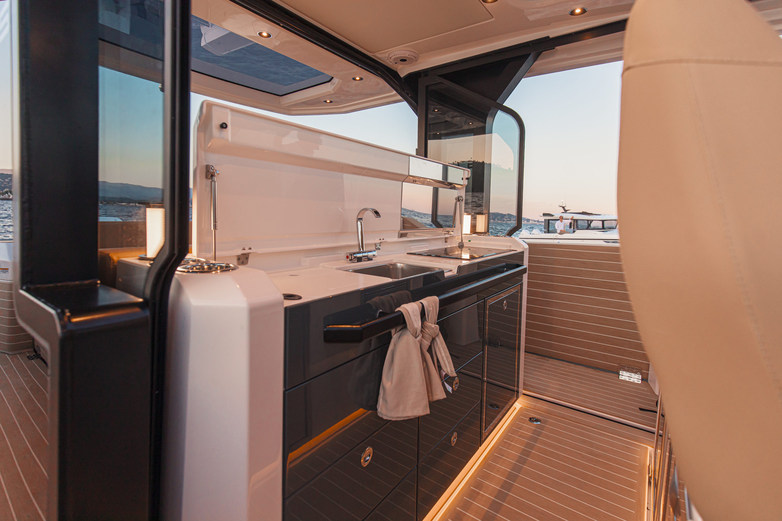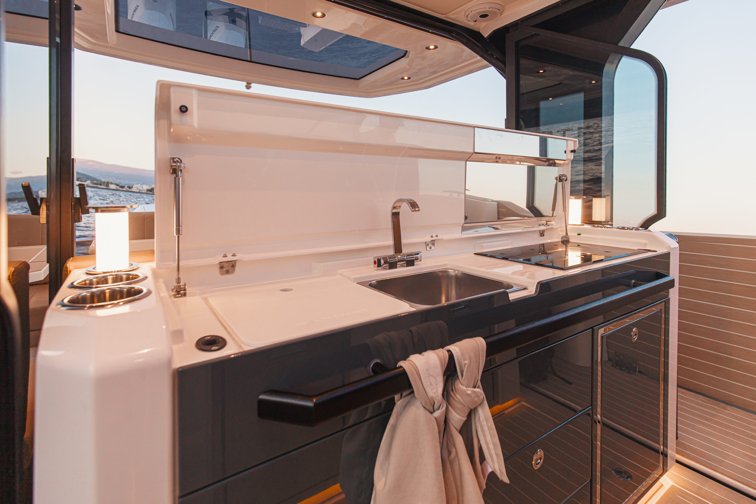 - 12 volt USB-C outlets (on the console and in the bow cabin) and inductive charger at the helm area