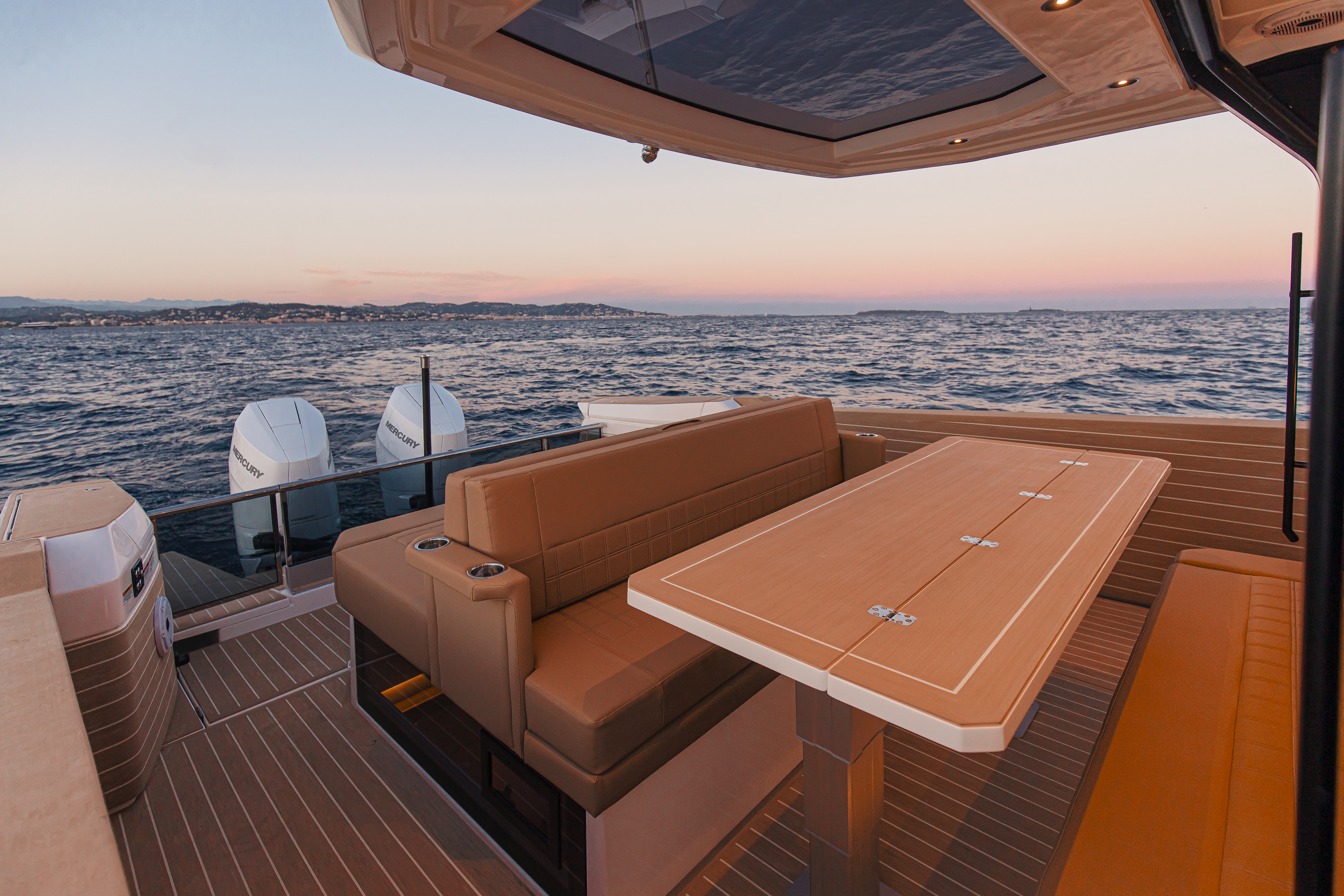 - Aft of Wet-bar - an aft facing sofa to seat 3- 4 people