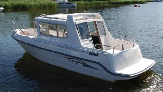 0 h, Utrustad med gångvärme, trimplan, dubbla vindrutetorkare, kompass, länspump, låsögla klass 3, taklucka, självläns till för och akterdäck, handfat, peke i fören, mattor i kabinen och bäddsats till aktersoffan.
