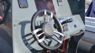Utöver standard är detta exemplar också utrustad med GPS/ plotter (Simrad 12″) inkl. sjökort, fjärrkontroll till plotter (Simrad OP50), ekolod, motor-bracket, arbetsbelysning på targabåge, bottenmålning, länspump, hamnkapell och motorlås.