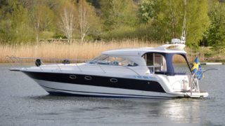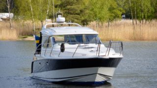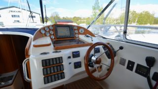 Utrustad med: GeoSafe Appstyrt båtlarm med GPS tracker/spårning, Rostfri dieseltank, Garmin 10” Plotter (3010C), Garmin Radar (GMR 18), Garmin Ekolod (GSD 20), Raymarine Autopilot (ST6002) med fjärrkontroll, bogpropeller, trimplan, Signalhorn,