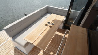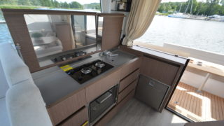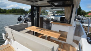 Extrautrustad med: Raymarine AIXOM PRO 12 med autopilot, Elektriskt ankare i fören med peke, elektriskt ankare i aktern, Trimplan, Bogpropeller, Teakpaket, Elektrisk toalett, 2 kylskåp, Dynor till fördäck, Högtalarpaket med 4 högtalare, Stora elektriska takluckan, Värmesytem, Förlängd badbrygga, Dörr på SB-sida, Komfortmadrasser, Efoy bränslecell, belysningspaket, bottenmålning,