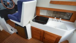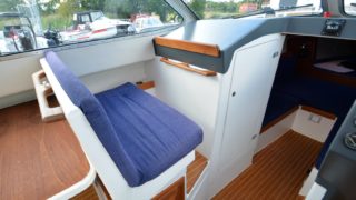 Garmin plotter med radar, sökljus, bokstrålkastare, bogpropeller, stereo med 4 högtalare, kylskåp, spis (oanvänd) vatten och diskho, durkbelysning ute och inne, toalett (aldrig använd) Iläggskivor med dynor, teak på akterdäck samt bord i teak, teakfanérdurk inne, gångvärme med defroster, Webasto dieselvärmare, 2 x vindrutetorkare med intervall, trimplan, lanternor, landström med laddare.