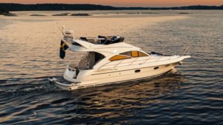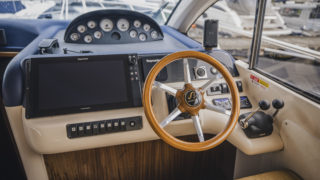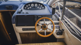 Utrustad med: Bogpropeller, trimplan, VHF, Radar, TV antenn och TV, Kyl med frysfack, Kyl extra stor under förarplatsen, Gasolspis 2 lågig, Elektrisk toalett, separat dusch och WC.