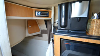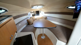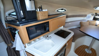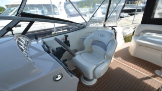 Utrustad med: bogpropeller, landström, servostyrning, stereo, ställbar ratt, kompass, länspump, toalett med septiktank, dusch inne och ute, varmvattenberedare, pentry med mictro, kyl, spis, diskho, soldäck, matta, belysning ute och inne, wetbar i sittbrunn, bord, 4 batterier, badplattform, flexiteek durkar, helkapell, hamnkapell, färgat skrov, automatiskt brandsläckningsystem, trimplan, ekolod, sötvattenstank med mätare, elektrisk motorlucka, spårsändare, tv med tv-antenn, Raymarine plotter (A65) samt Vhf.