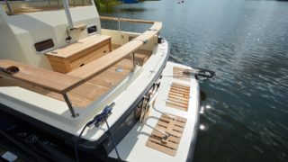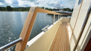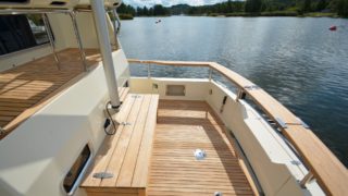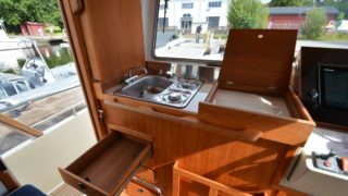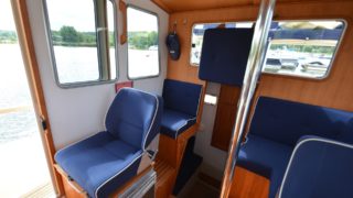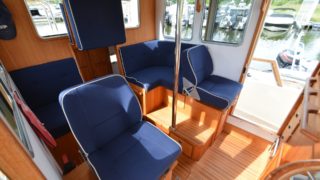 Blåa skrovsidor, teakdäck, teaksteg, bottenfärg, bord på fördäck, extra brett teaktäcke i aktern, öppningsbart räcke, toalett med tank, dusch i aktern och på toa, varmvattensberedare, stege i fören, kapell på fb, jeepruta på fb, pentry med 2 plattor, kylksåp, dieselvärmare, landström med laddare, fönster i skrov vid kojer, läslampor, bogpropeller, ankarspel i aktern, roderindikator, vindrutetorkare med intervall, 3 x strålkastare på taket, färddator till Volvo Penta, ny stor Furuno plotter (2021) infälld i panel, skumfyllt skrov.