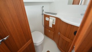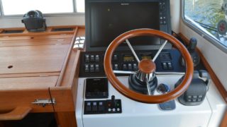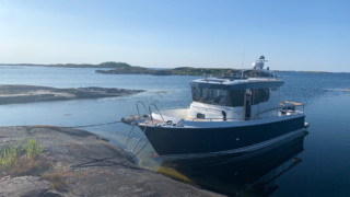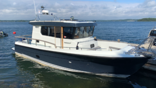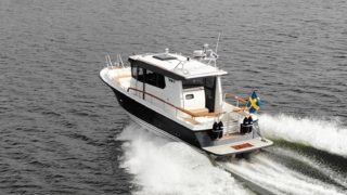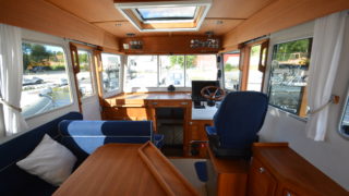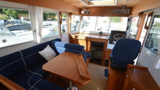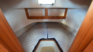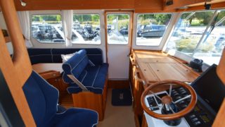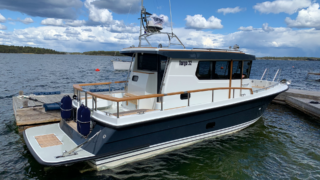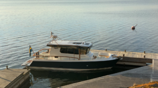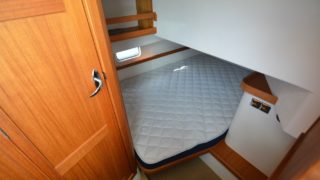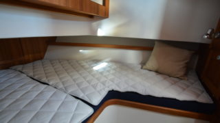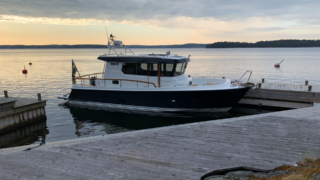 Nåtad teak på badplatform samt steg till akterdäck, Bottenfärg i svart epoxy, Nåtad teak på sittplatser fram, Nedsänkt sittbänk fram, Nåtad teak på på fördäck mellan hajfenor, Räcken i rostfritt på hyttaket, Tvåfärgat däck, Gråa halkytor på däck och sittytor, Rostfria lanternor, Teakbord på fördäck (fällbart med förvaring), Extra fäste för teakbord på akterdäck, Extrabrett teakräcke i akter, Förvaringslåda i teak på akterdäckshörn 2st, Led-ljuskapel under kepsen, Dusch i akter (varm och kallvatten), Öppning i teakräcke med rst. beslag, Uppfällbara klaffsittsar i teak 2st på hyttens aktervägg, Solfilm i framfönster samt sidorutor (rullgardinsmodell som minskar insyn), Gardiner till sidofönster och akterfönster, Halogen spotlights 4st i tak med dimmer, Sjutlucka elektrisk med rullgardin och myggnät, Bord i salong med stativ, Hylla i förkabinen, Uppgradering av kylskåp till draglåda 65L, Varmvattenberedare 40L, Targa servis för sex personer med tallrikar, skålar, muggar, vin glas, glas och bestick, Mätare samt givare till septitank, Sjövattenspolning för wc, Värmare eberspächer D4 med utblås i hytt, akterkabin, förkabin och Wc, Landström 230 V me d5st uttag samt 25 m landströmskabel, Batteriladdare Mastervolt 12/50 A, Övervakningspanek till laddare, Laddare 2200W/100A, Solpanel 75 W, Fönster i skrov vid kojer ej öppningsbara, Läslampor i kojer, Mekaniskt fjädrande stol 80 mm fjädring, Mugghållare 2st, Stereo fusion RA70 Bluetooth med 2 högtalare i hytt, Durkbelysning (led i styrhytt, trappor, akterkabin och förkabin), Beige langeterad matta i hytt, 230 V uttag vid skåpet bakom förarstol, 12 V uttag akterkabin för inkoppling av separat kyllåda, Soffa med fällbart ryggstöd (istället för passagerarstol), Bädmadrass 3 cm För+akterkabin+stickkoj, Targa dörrmattor 2st, Läslampa med arm i styrhytten, Bogpropeller extra kraftig (80 kg dragkraft), Ankarspel akter (15 kg rst, 50 m blyad tamp) manöver i hytt/akterdäck, Ankarspel för (16 kg ost, 40m tamp) manöver hytt och dock, Halkipar på fördäck med rullar, Stävstege (dubbelvikt), Rostfria fenderkorgar i akter vid akterport för 4 st fendrar, Vindrutetorkare med intervall och 2 hastigheter (ej spolning), Arbetsljus på hyttaket fram samt på targabåge akterut, VP full kontroll package (bränsleåtgång, trip program etc), Raymarine 16 Pro-S, Raymarine Radar Quantum Q24C 18″, Raymarine autopilot p70R Evolution med wireless controller, Vhf & AIS700, CPT-S bronze through-hull echo/temp, Sjökort Navionics Large 44 Ost & västkust samt Danmark, Lutande panel för infällnad, av plotter/radar framför ratt, Svarta Volvo Penta instrument med kromring, Bakterierenare för bränsle, Extra service batteri 120 Ah, Gasdämpare till motorlucka, Flytkraft/ljudisolering i skrov samt under kojer 80%, Blå lampa i targabågen som indikerar inkopplad landström, Mentemarine trimplansautomatik, Alcantra dark navy, Teak badplattform utgår endast steget, teak ribbor lucka i bryggan, Tvåfärgad badbrygga, Kylbox med K35 kylelement inbyggd i Bb sidogång däcket.