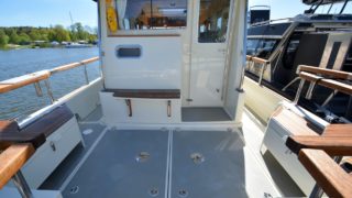 Comfort fore cabin (ej flybridge) aft door, toalett i akter kabin, gråa fribord med dubbla vattenlinjer, bottenmålning, teakreling runt om extra bred med spöhållare, extra handtag på pilothousets tak, klaffsitsar i teak, teak mellan hajfenor, skumfyllt skrov (80%) ankarspel i fören med delvis kätting, ankarspel i aktern, två klaffstolar i motorrummet, vinklad teakbox för plotter i hytten, solgardiner, dämpad Kab stol, teakklädda skrovsidor invändigt, sollucka med myggnät i förkabin, elektrisk keramisk spishäll, dieselvärmare Eberspächer (d4) kylskåp inne, extra kyl ute, dusch ute, sjövatten, extra start batteri, landström med laddare, inverter, aluminiumboxar i motorutrymmet, trimplan interceptorer, Garmin navigation så som: VHF, Ais, Gps Map 7412, fjärrkontroll, gps antenn, radar, ekolod, autopilot, backkamera.
