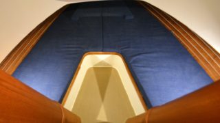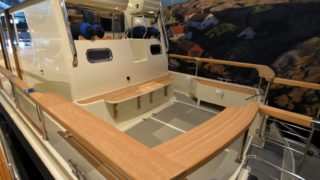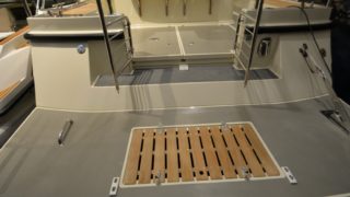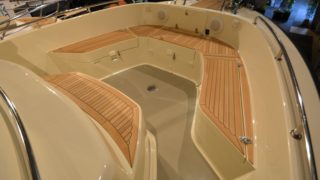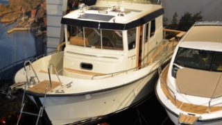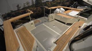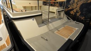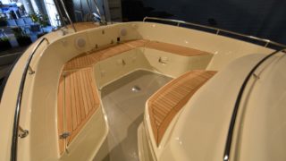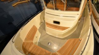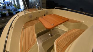 Båten står leveransklar nypolerad, teaken iordninggjord för säsongen.