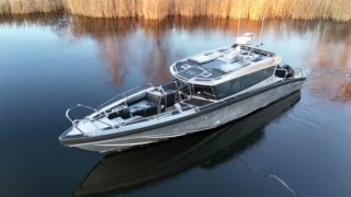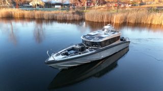 Där samlas all information som är relevant för föraren såsom bränslenivåer, motordata och navigation. Som navigationsstöd finns Simrads Halo 24” pulskompressionsradar som underlättar vid längre körningar. Båten är utrustad med steglösa sido-thrusters i både för och akter för att förenkla angöring och finmanövrering.