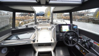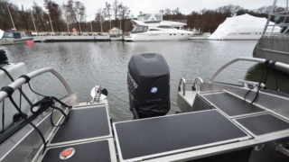 arbetsljus LED, bogpropeller, Active trim Mercury, rattkontroll för motorns trim, bottenmålning, svartmålad radar, ankarspel, Fusion stereo, belysning på durk invändigt och fördäck,