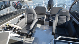 Standardutrustning: (Vesselview link, Fjädrande stolsunderreden, Hydraulstyrning, Ställbar ratt, Digitalt sjökort, Trimplan, Bottenmålning, Gasfjädrande dörr, Klass 3 låsbygel, Ljudisolering skrov, Vindrutetorkare, Lanternor, Securmark stöldmärkning, USB-uttag, Motorlås, Badstege, Brandsläckare, Elektrisk länspump, Handlänspump, Batteri AGM 165 Ah, Batterivakt, 12V-uttag, Mugghållare, Isolerad 13mm nyckel, Snabblänsande brunn, Dynor aktersoffa, Gasfjädrande luckor, 3M Blackout-film mot bländning)