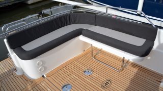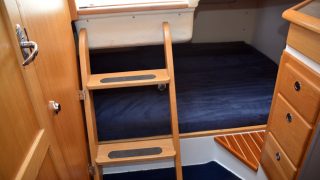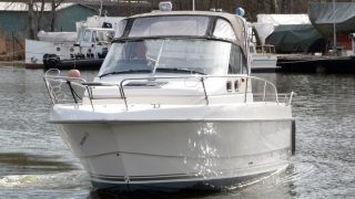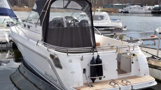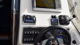Utrustad med: bogpropeller, kapell, stereo, Garmin 4010, dynor, 2 x vindrutetorkare, strålkastare, elektroniskt reglage, trimplan, 3 batterier, kylskåp, dieselspis 2 plattor, fullteak, matta, bottenmålad, badstege, värmare, kall och varmvatten, dusch på badbrygga, landström, laddare, ankarspel i aktern,