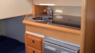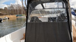 Rymlig walkaroundbåt med stickkoj och förarkabin, övernattningsbar för 4 pers.