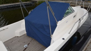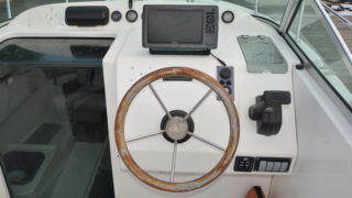 Plotter Garmin, trimplan (ny powertrimpump 2021), hamnkapell, gångkapell, dynor solbädd, blått skrov, landström.