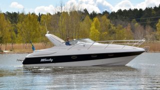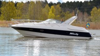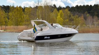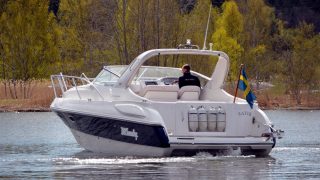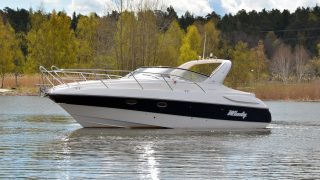 Utrustad med: blått skrov, ankarspel i fören & aktern, Garmin plotter, ekolod, vhf, bogpropeller, teak i sittbrunnen och på badbrygga, akterkapell samt hamnkapell (Helly Hansen), dynor i sittbrunn, Wallas spis, webasto dieselvärmare, varmvattensystem.